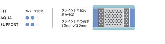 ファインレボ肩から足 ファインレボを肩から足部分に配置することで、首や肩・腰への負担を軽減しながら自然な寝返りをサポートします。